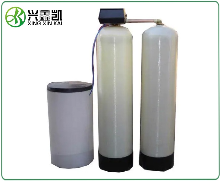 再生時要求先對樹脂層進行反洗,以去除上層樹脂可能截流的懸浮物等雜質(zhì),同時起到松動樹脂層的作用。然后從樹脂罐上部進鹽,再生廢液通過下排排出。進鹽過程中,鹽水中高濃度的Na+把失效樹脂吸附的Ca2+ Mg2+離子置換下來,與再生廢液一同排出,達到活化樹脂的目的。吸鹽結(jié)束后,再以約一到兩倍樹脂體積的清水把樹脂層中的濃鹽水置換出來。最后進行正洗工藝,徹底清除樹脂層中殘留的鹽液。再生過程中濃鹽液通過噴射器自動吸入,并自動混合到預定濃度后送入交換器,再生劑濃度可通過閥門自由調(diào)節(jié)。