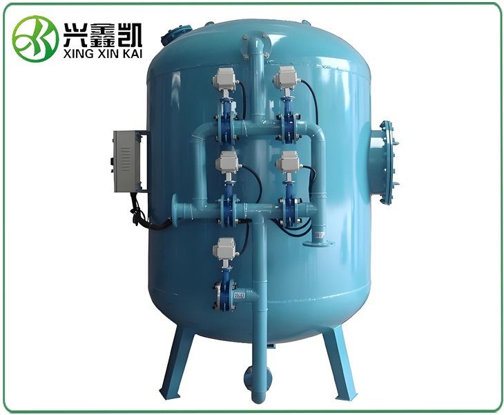 多介質過濾器利用石英砂、無煙煤作為過濾介質。該濾料具有強度高,壽命長,處理流量大,出水水質穩定可靠的顯著優點,石英砂的功能主要是去除水中懸浮物、膠體、泥沙、鐵銹。采用水泵加壓,使原水通過過濾介質,去除水中的懸浮物,從而達到過濾的目的。
